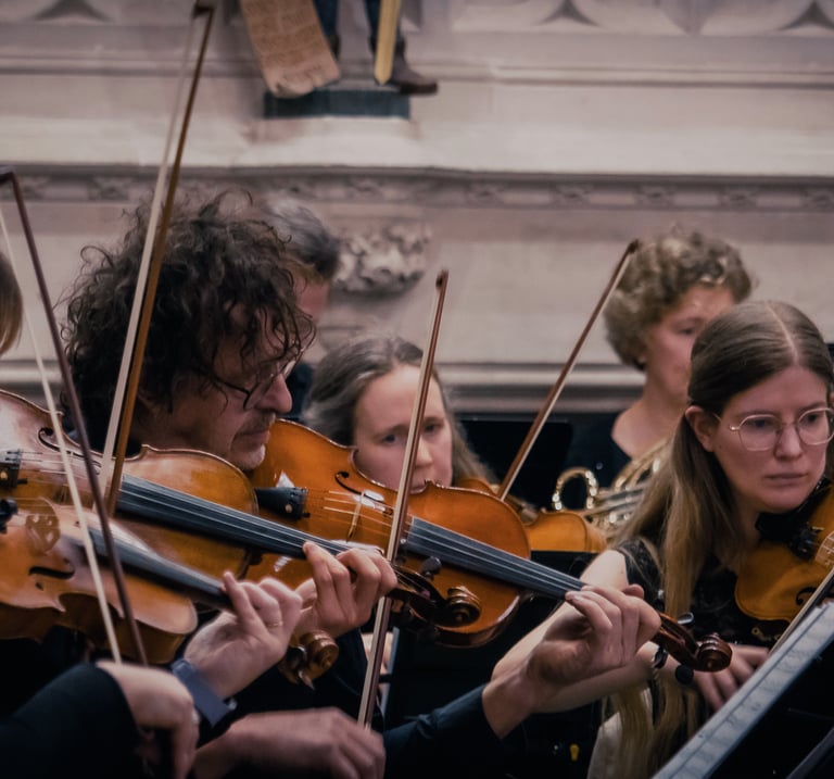 We spelen het klassieke repertoire voor strijkers, soms aangevuld met enkele blazers, maar we werkten ook al samen met folkmuzikanten, jazz combo's, kleinkunstenaars, ... Bijvoorbeeld The Swigshift, Bloedend Hart, Ishtar, Chorus, De Reutelnoot, Eric Hallein, Bert Ostyn, Aranis, ....
